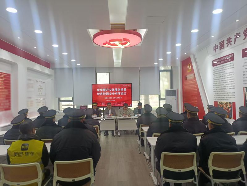 会议首先由保卫干事杨稼轩分析讲评了近期校园安全工作的有关情况,并从优化队伍骨干分工和强化工作履职、加强工作规范和主动性、做好服务单位日常管理等方面提出了工作要求;保安队队长段伟布置了校园安保优化提升工作方案的具体内容,对校园安保岗位和职责进行了细化优化;保安公司区域经理张欢欢发言表示,保安公司将严格执行学校关于保安队伍优化提升的相关要求,将全面细化工作举措,严格保安队伍履职管理,提升安保服务能力水平,确保安保工作安全有序开展。