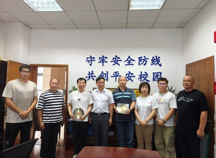 潘高荣代表武装保卫部(处)向吴明、陈明敏两位同志表达了感谢,并送上美好的祝福,祝愿他们在未来日子中身心健康、生活愉快,万事如意,在丰富退休生活的同时,继续关注学校的建设发展,常回家看看。他勉励部门同志要发扬老同志不忘初心、勇于担当、主动作为、开拓进取的传统和作风,不断提升工作本领,主动适应安全发展新形势,以时不我待的责任感和干事创业的强大动力,推进安全工作的高质量发展,全面守牢校安全防线,为创建平安校园贡献力量。