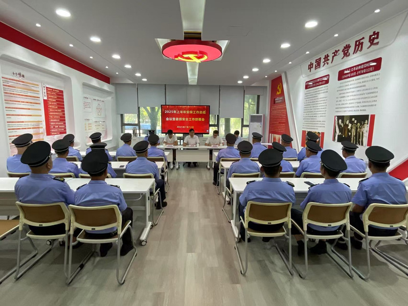 会议首先由保安队长段伟对2025年上半年安保工作进行了总结,指出了校园安保需进一步强化的管控措施,并结合夏季高温季节校园特点对暑假校园安保工作进行了部署;学校安保服务单位上海五蕴保安服务有限公司区域经理张欢欢围绕暑假和上半年安保工作提出了要求,他强调安保队伍要全面提高安全防范意识,加强安全风险防控,强化团队协作,汇聚智慧力量,提升服务质量,树立良好形象,为学校的安全运行提供支撑保障。