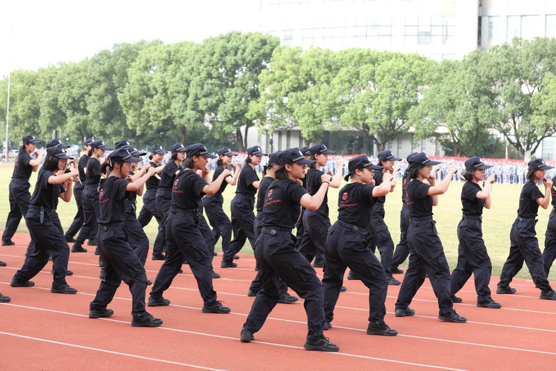 庄严肃穆的升旗仪式后,开始进行特色项目汇报展示,警务学院女子匕首操方队英姿飒爽,军训团部军体拳方队气势如虹,淋漓尽致彰显了巾帼锋芒与青春锐气。分列式表演环节,军魂团国旗护卫队引领学生军训团47个排正步通过主席台。同学们目光如炬、步伐铿锵,口号声震云霄。秋阳为迷彩镀上金辉,汗水见证着蜕变成长。此刻,他们以昂扬斗志交出军训完美答卷,闪耀着青春的荣光。
