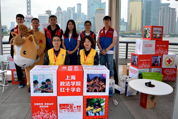 5月8日上午,由中国红十字会总会和上海市人民政府共同主办的“博爱申城——5·8世界红十字日滨江行”活动在黄浦江两岸的滨江大道同时举行。全国人大常委会副委员长、中国红十字会会长、红十字会与红新月会国际联合会副主席陈竺,上海市委副书记、市长、市红十字会名誉会长应勇等领导和嘉宾出席活动并讲话。我校红会作为高校代表,参与展示上海红十字青少年的风采,全市共三所高校参与展示。