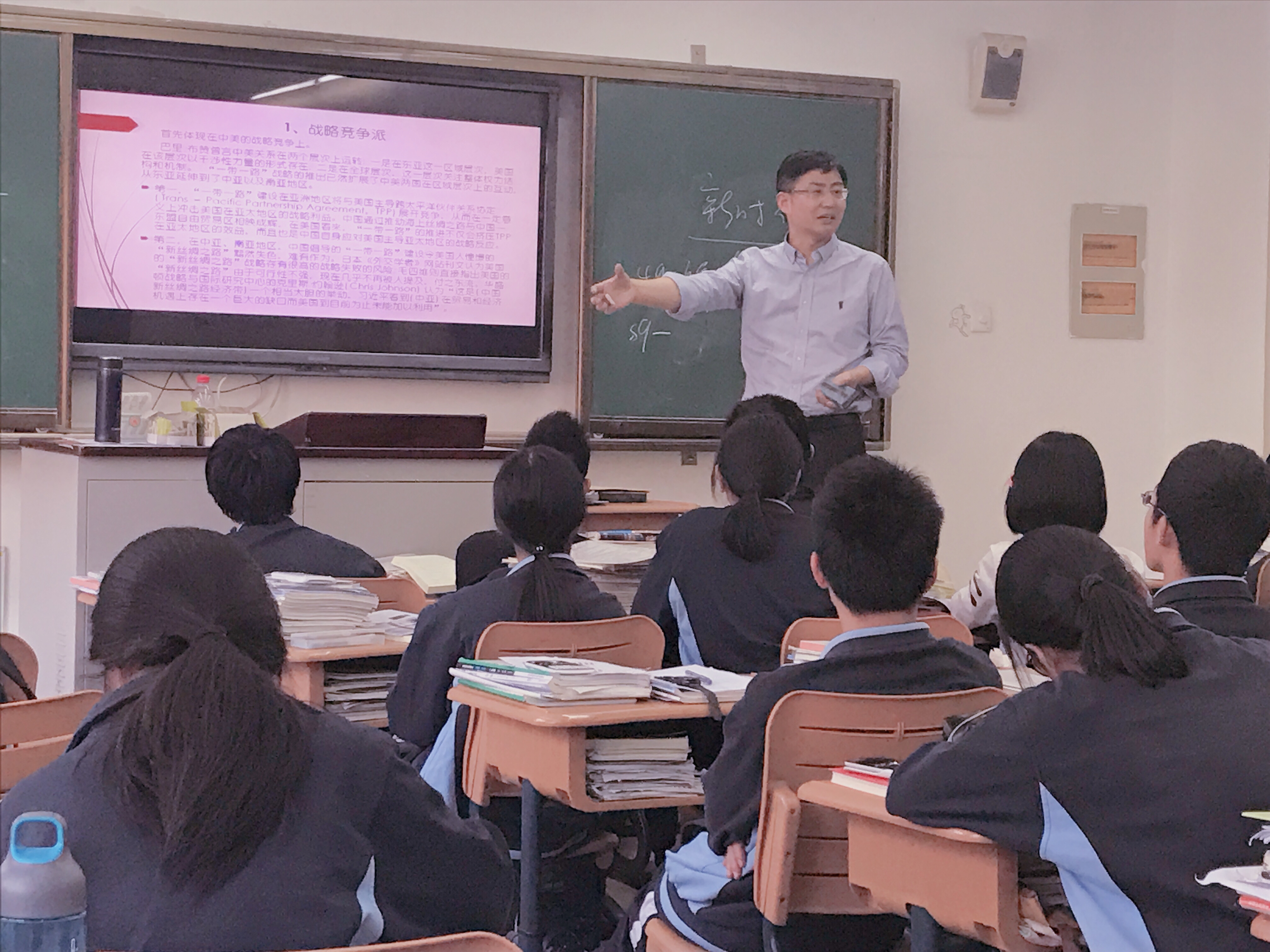 在我校与上师大附中的共同倡议下,国际事务与公共管理学院院长汪伟民教授、招生与就业指导办公室主任张军领衔进行了课程开发,国际法学院盛红生教授、石俭平副教授,国际事务与公共管理学院副院长谈谭副教授、焦世新副教授、杨小辉讲师、刘伟伟讲师,上合培训基地韩冬涛博士后组成了课程教学团队,为上师大附中创新实验班授课,每周二下午开讲。