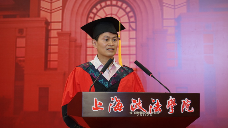 典礼在庄严雄壮的国歌中拉开序幕。毕业生代表、校友代表和教师代表分别发言。毕业生代表回往过去几年的上政学习生活经历,分享从中所获得的成长思考、情感体验和人生感悟,用真挚朴实的言语向悉心培育的母校、孜孜不倦的老师和志同道合的同窗表达最深情的告白、最由衷的感谢和最美好的祝愿。校友代表讲述着他们的成长故事,叙说着对母校的深情厚谊,寄托着对毕业学子的殷切祝福。三尺讲台,肩负的是一份责任,收获的是一份荣光。临别之际,教师代表给全体毕业生送上“最后的一堂课”,祝贺他们顺利完成生命中至关重要的一次华丽转身,希望他们继续努力奋斗,以坚韧不拔的毅力、高尚独立的人格、开放阔达的胸怀,做一个无愧于自我、无愧于上政、无愧于新时代的法律人。