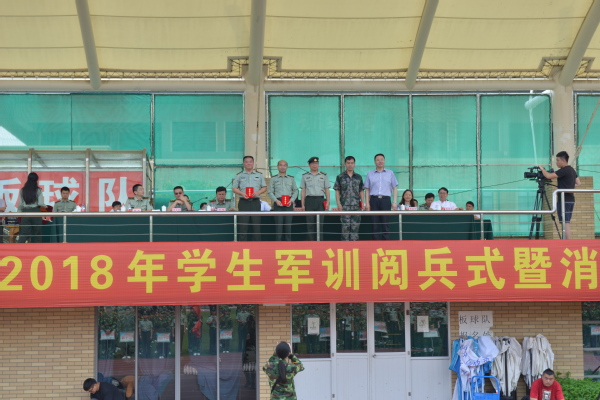 7月3日,我校2018年学生军训阅兵式暨消防疏散步兵排平原进攻战斗演习在学校操场举行。校党委书记夏小和,校党委副书记、校长刘晓红,校党委副书记、纪委书记潘牧天,校党委副书记、副校长刘刚,副校长关保英,副校长胡继灵,副校长姚建龙,上海市警备区战备建设局参谋贾启明,武警上海总队九支队三大队教导员吴凡,以及职能部门和二级学院负责人出席活动。