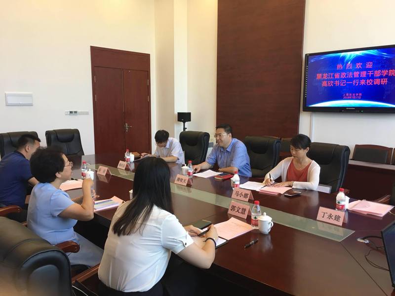 潘牧天对高欣一行到我校调研交流表示热烈欢迎,并介绍了学校的发展历史以及人才培养、师资队伍建设、科研工作、国际化办学、上合组织培训基地建设等方面情况。潘牧天表示,新利18官方客服自成立以来始终坚持开放办学,在上级部门领导和有关各方面支持下,经过学校历任领导班子和全体师生员工的不懈努力,取得了今天的成绩。站在新时代的历史起点上,学校愿同包括黑龙江省政法管理干部学院在内的兄弟院校以及有关各方密切合作,加强协同,共同为教育事业发展和法治中国建设做出新的更大的贡献。