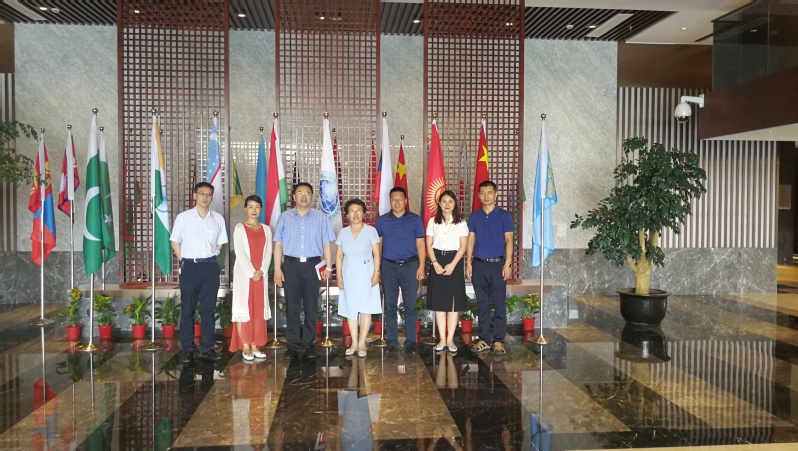 杨向东介绍了学校重点领域发展规划以及学科建设情况,马小娜介绍了学校继续教育及社会培训方面的情况。高欣一行还参观了上合组织培训基地和图书馆,听取了培训基地基本情况和图书馆日常管理、运行情况介绍。
