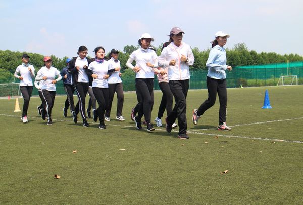 为了备战今天下午的决赛,我们女队的姑娘们上午冒着40度的高温在操场上演练技战术,暴雨前的闷热使队员们大量出汗,浑身湿透的运动服紧紧地贴在身上,非常难受,但我们队员们硬是坚持了两个多小时才收队。