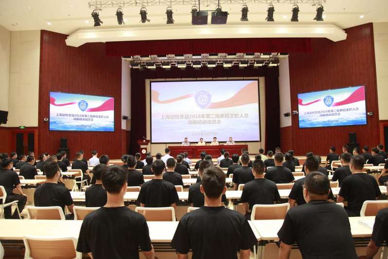 会议在庄重的国歌中拉开序幕。杨尚锋介绍了上海边检总站2018年第二批新招文职人员岗前培训工作方案,宣读了关于成立新招文职人员岗前培训大队及临时党支部的决定,并介绍了带训教官。文职代表张嘉伊和教官代表刘峰分别作了参训发言和带训发言。