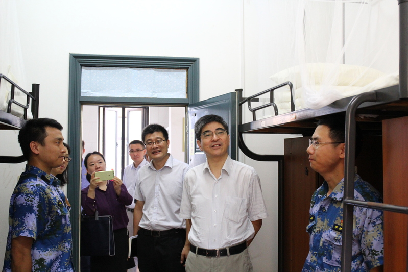 陈皓首先来到学员宿舍看望参训学员并与学员亲切交谈,了解学员们日常学习、军事训练、业余文化生活等情况,观看了参训学员整队集合及队列行进等军事训练科目。随后,陈浩一行与培训班管理人员及学校工作人员进行座谈,听取培训工作汇报。