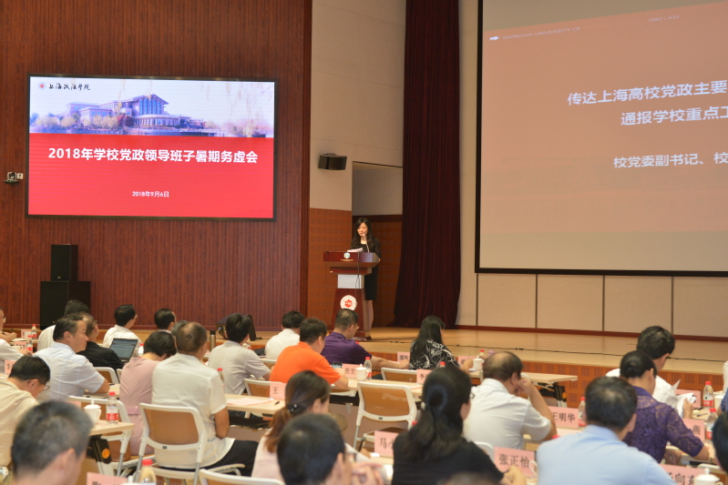 学校要闻 9月6日,学校召开2018年暑期党政领导班子务虚会,传达学习上海高校党政主要负责干部会议精神,分析研判学校发展形势,共商学校发展大计。校党委书记夏小和,校党委副书记、校长刘晓红,校党委副书记、纪委书记潘牧天,校党委副书记、副校长刘刚,副校长关保英,副校长胡继灵,副校长姚建龙出席会议。