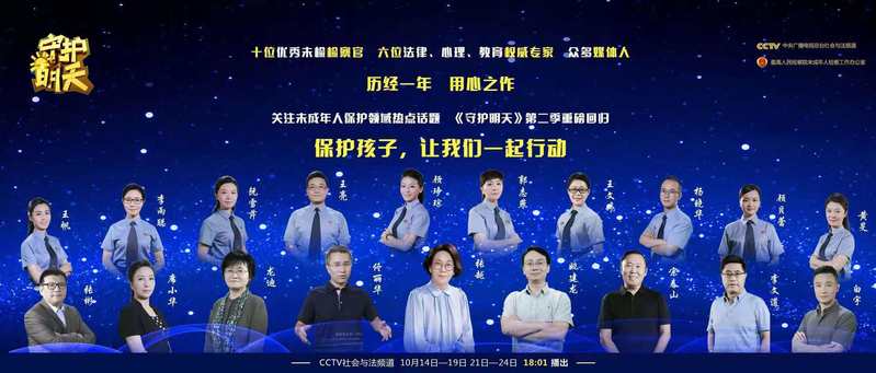 《守护明天》第二季共10期节目,聚焦家庭、社会、网络、学校等未成年人保护领域中最受公众关切的话题,通过10位检察官讲述典型案例和少年司法、心理、教育等领域专家的共同讨论,为观众呈现国家未成年人保护工作新成果,营造全社会共同保护未成年人的良好氛围。姚建龙应邀作为法律专家参与了节目的选题策划,并作为点评嘉宾参与了录制。该节目将于10月14日起,在社会与法频道播出。