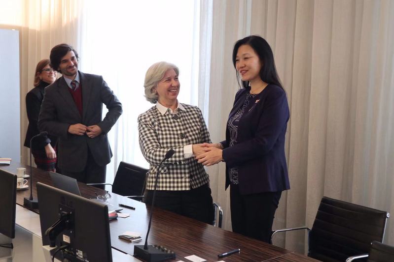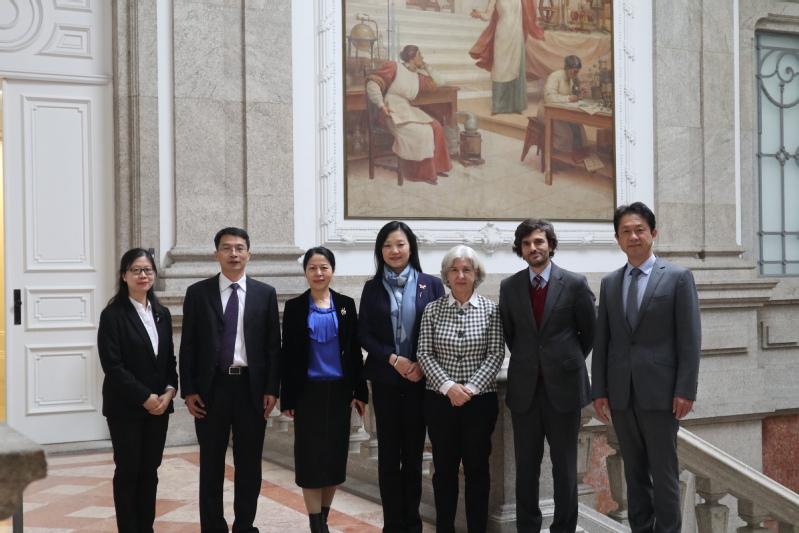 在葡萄牙,代表团拜访波尔图大学并举行两校签约仪式,正式签署两校科学文化交流合作协议。刘晓红和波尔图大学副校长Maria de Lurdes Correia Fernandes女士各自介绍了学校发展的特色,波尔图大学法学院院长Miguel Pestana de Vasconcelos先生介绍了法学院学科专业发展的进展。双方还就教职员工交换和专业人才培养进行了深入探讨,并一致表示将加强专业领域的人才交流与合作。