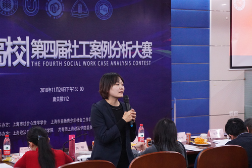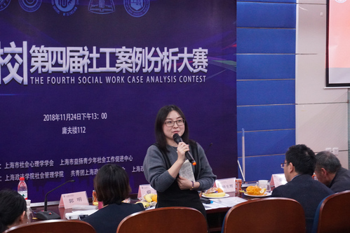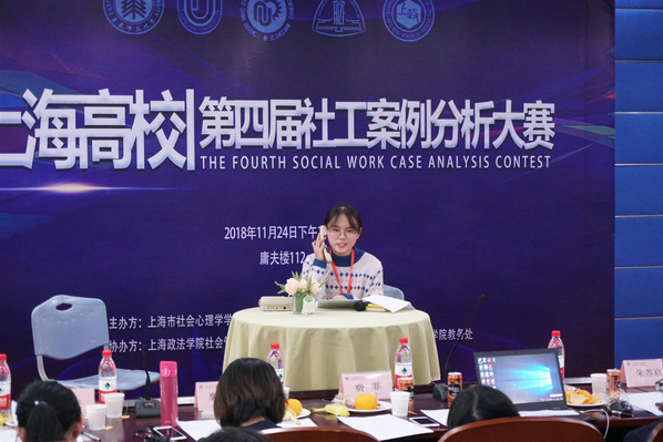 11月24日下午,上海高校第四届社工案例分析大赛在我校庸夫楼112会议室顺利举办。大赛由上海市社会心理学学会、上海市益扬青少年社会工作促进中心主办,我校社会管理学院、教务处、学生工作部、校团委共同承办。我校副校长关保英教授,上海市社会心理学会副会长、我校社会管理学院党总支书记连淑芳教授,我校社会团里学院党总支副书记陈娜副教授、社会工作教研室主任时怡雯博士,以及多名专业课教师作为嘉宾出席大赛。来自华东师范大学、上海大学、华东理工大学、华东政法大学、新利18官方客服五所高校的九支研究生和本科生队伍共同参赛。
