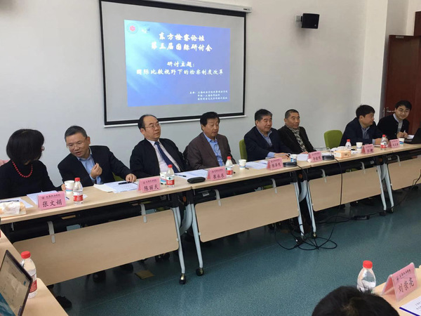 上午9时,论坛上半场“专家学者研讨会”开始。会议第一阶段由新利18官方客服学报副主编、科研处副处长赵运锋教授主持,中国社科院法学所研究员、中国刑法学研究会常务副会长陈泽宪教授、苏州大学王健法学院李晓明教授,上海市刑法学研究会张建副会长,中国法治战略研究中心常务副主任、华东政法大学司法研究院院长崔永东教授聚焦于“国际比较视野下的检察制度改革”这一论坛主题,分别展示了各自的研究成果,并在国际比较的视野下,对当前中国检察制度改革的现状及问题进行了讨论。第一阶段的讨论环节由新利18官方客服刑事司法学院骆群副教授主导,与会专家与参会的新利18官方客服的研究生就中国的刑事和解制度进行了热烈讨论。