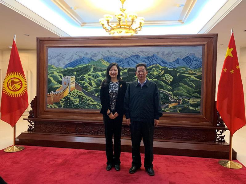 代表团在吉乌访问期间,拜会了中国驻吉尔吉斯斯坦共和国大使馆,中国驻乌兹别克斯坦大使馆,就我校及培训基地的相关工作向中国驻吉尔吉斯斯坦大使肖清华、中国驻乌兹别克斯坦大使馆张汶川代办进行沟通和交流,得到了充分肯定与支持。
