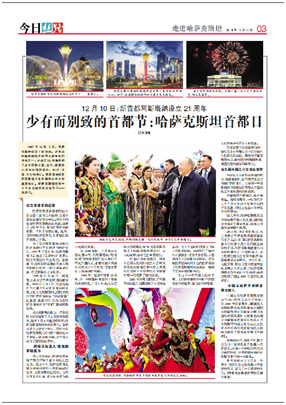 学校要闻 正值哈萨克斯坦新首都阿斯塔纳设立21周年,12月12日,我校俄语专业大三学生龙瑾瑜在吉尔吉斯斯坦《丝路新观察》第154期与哈萨克斯坦《今日丝路》第43期上发表了题为《少有而别致的首都节:哈萨克斯坦首都日》的文章。
