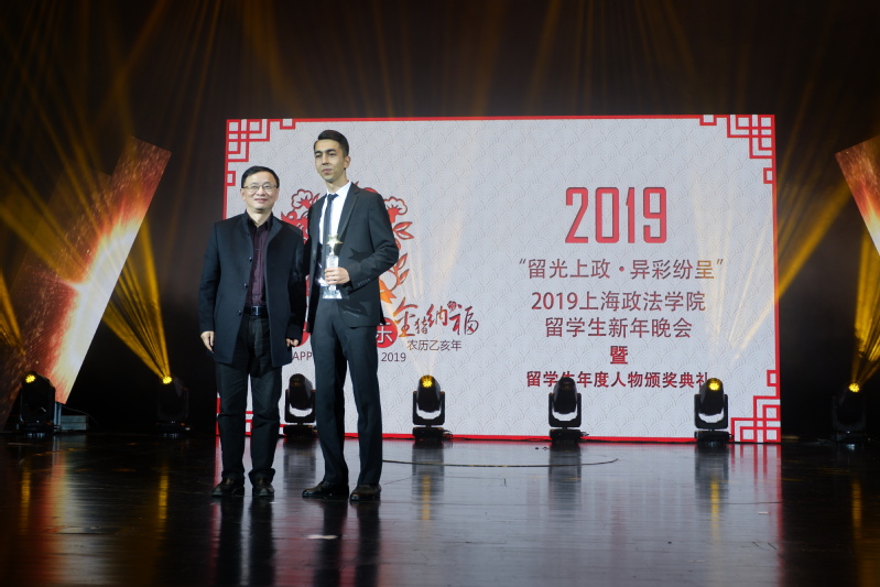 吴强、刘刚、关保英为留学生代表颁奖。国际学生联谊会主席Fazik凭借其优异的学习成绩、认真负责的工作态度受到老师和同学的一致好评,被评选为留学生年度人物。阿根廷留学生晁云海、蒙古留学生孟和琪琪格、东帝汶留学生安东、吉尔吉斯斯坦留学生张明,凭借个人优异的表现脱颖而出,分别被评为学术之星、体育之星、文艺之星和公益之星。