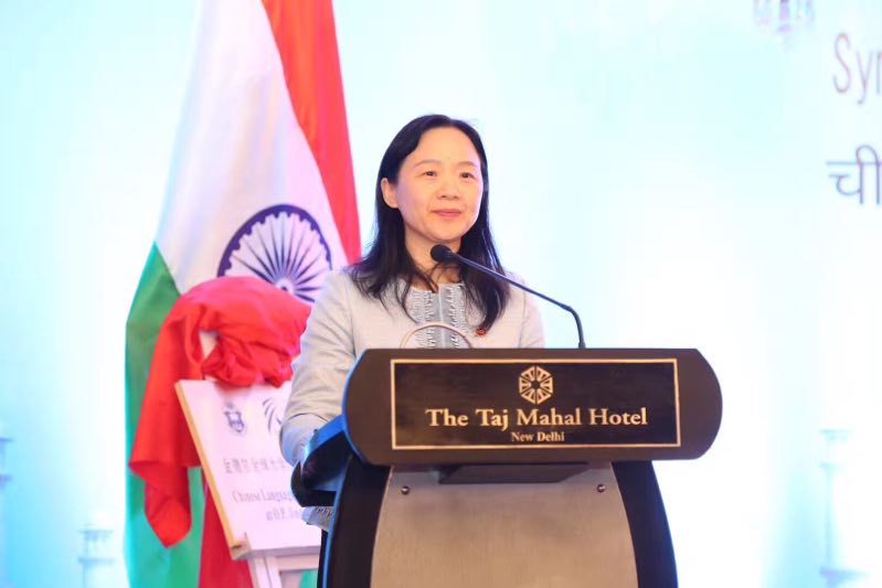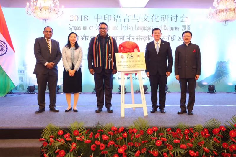 研讨会上,中国驻印度公使、孔子学院总部和中印双方合作院校负责人共同为新利18官方客服与金德尔全球大学的“汉语言培训与研究中心”揭牌。