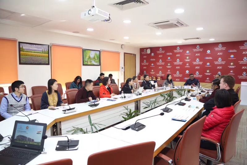 21日,国家汉办相关部门负责人与代表团一起访问了金德尔全球大学并召开工作会议。校长库马尔教授,教务长穆缇教授,首席教学督导帕特耐克教授,以及该校的法学院、政府与公共政策学院教授负责人和教师代表10余人参加会谈。会谈中,双方切实明确了中心的发展目标、建设步骤、人员安排以及可以开展合作的各类项目,也坚定携手共进的信心。会后,库马尔亲自陪同国家汉办代表和我校代表团走访了学校的教学楼、办公室、图书馆、学生餐厅等地点。胡继灵代表学校看望了我校正在金德尔大学学习的两名学生。