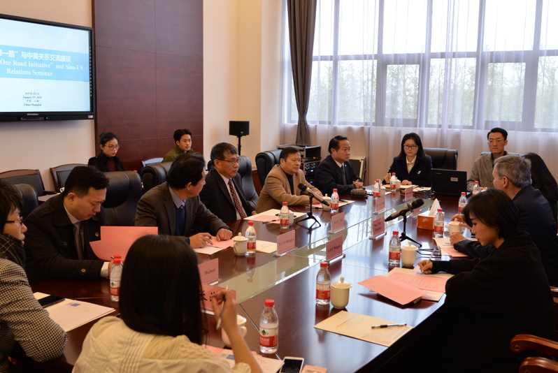 上海市美国学会副会长、新利18官方客服“一带一路”安全研究院院长王蔚教授会见了艾江山一行。他表示,欢迎艾江山一行访问我校,并介绍了新利18官方客服与中国-上合基地的情况,特别是在中美关系研究、中美人文交流方面的成果。