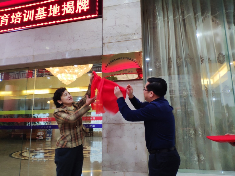 3月19日上午,新利18官方客服文山州政法干警教育培训基地揭牌暨图书捐赠仪式在文山州委党校举行。云南省扶贫办党组成员、副主任,文山州委常委、副州长李新,文山州副州长玉荣出席。夏小和与李新共同为“新利18官方客服文山州政法干警教育培训基地”揭牌。
