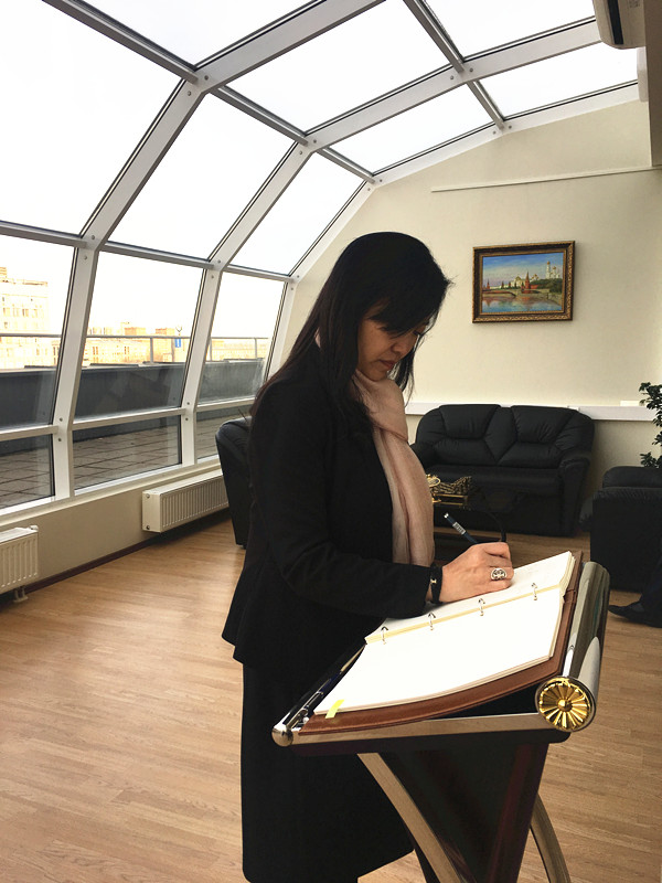 双方就师生校际互访,教学科研合作等方面达成了意向。哥利琴科夫表示:“法学院作为莫大三大奠基院系之一,自1755年建校以来一直是莫大最受重视的机构,莫大法学院愿与新利18官方客服在教学科研领域展开全面合作,并期待尽快启动相关项目。”会后,刘晓红应邀在莫大名人留言簿上签名并题词:“愿中俄友谊长存!”