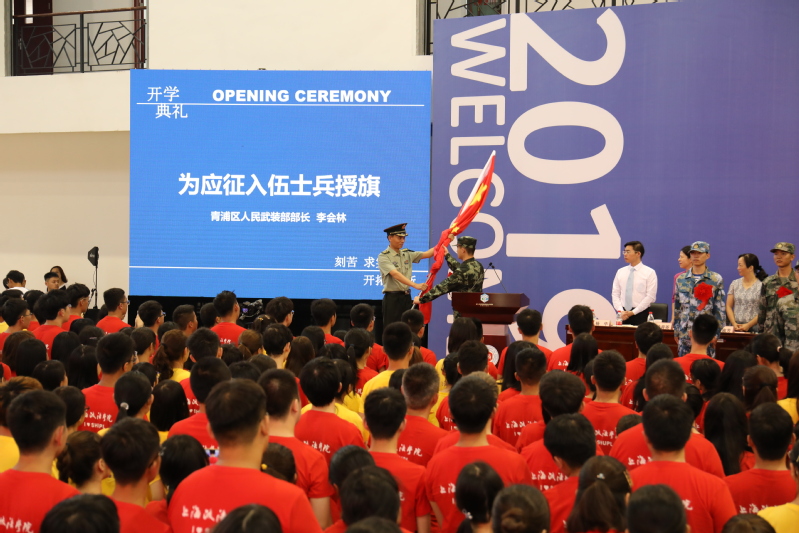 青浦区人民武装部部长李会林郑重向今年新征入伍的同学授旗,欢送36位新兵入伍出征。新兵同学即将踏上征途,保家卫国,体现了上政新青年的责任感和使命感!
