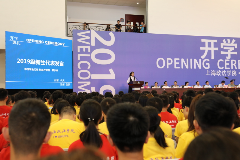 通过学工部易班发展中心网络平台海选出来的2019级新生代表发言人、上海纪录片学院郭宇婷分享了她的中国梦、大学梦:希望成长为爱国荣校、理想坚定、人格完全、勇担责任的时代新人!
