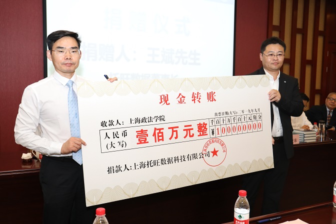 托旺数据科技有限公司向学校捐资100万元人民币予以支持学校和人工智能法学院发展。