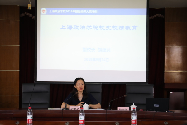 胡继灵结合习近平总书记关于高等教育思想的系列讲话精神,从学校的历史沿革、当前现状、发展蓝图以及大学教师应当具备的素质等四个方面作了报告。她向新进教师深情回顾了上政的初创期、成长期、转型期和跨越期四个发展阶段。她指出,上政35年艰辛而又辉煌的办学历程,非常不容易,值得我们每一位上政人铭记在心。她从办学定位、学科专业、人才培养、师资队伍、国家项目、国际交流、办学条件等七个方面介绍了学校的发展现状,特别介绍了习近平总书记倡议在我校设立的中国-上合基地,主动对接国家和社会发展重大需求,发挥培训、智库和论坛三大功能,积极服务国家战略,取得了一系列重大成果。