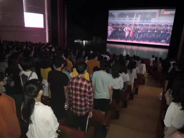 10月1日,学校组织师生在学生礼堂集中观看庆祝中华人民共和国成立70周年大会直播