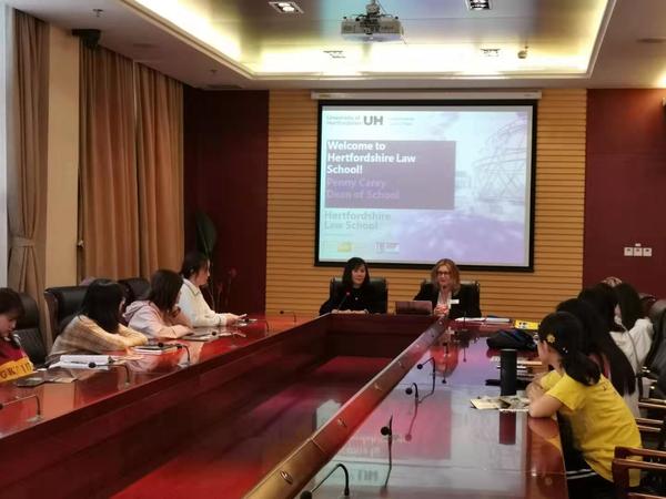 学校要闻 10月10日,英国赫特福德大学法学院院长Penny Carey(佩妮·凯里)、中国合作项目总监颜依雯、中国市场经理周妍吉一行访问我校。