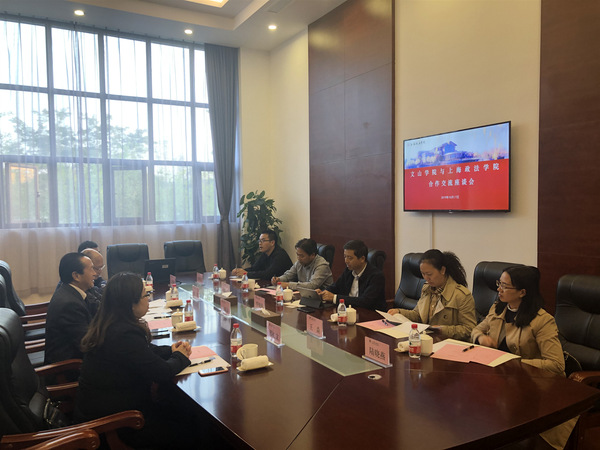 关保英对李炳泽一行的到来表示诚挚欢迎,并从学校历史沿革、教学、科研、实践教学、中国-上合基地建设等方面介绍了学校的基本情况,对双方合作情况作了回顾与展望,对文山学院在今年暑期实习中对上政师生的关怀表示感谢。希望双方立足实际,不断发掘双方特色,取长补短,共同推进两校合作向纵深发展,助力沪滇合作。