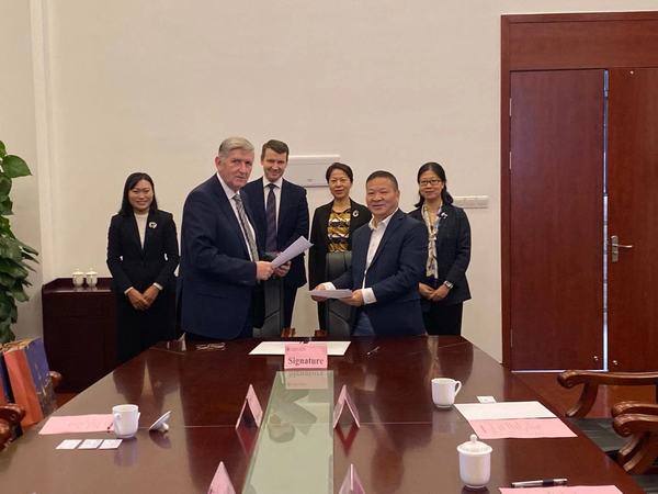 当国际交流处处长、国际交流学院院长欧阳美和代表我校与莫斯科大学签署合作谅解备忘录。