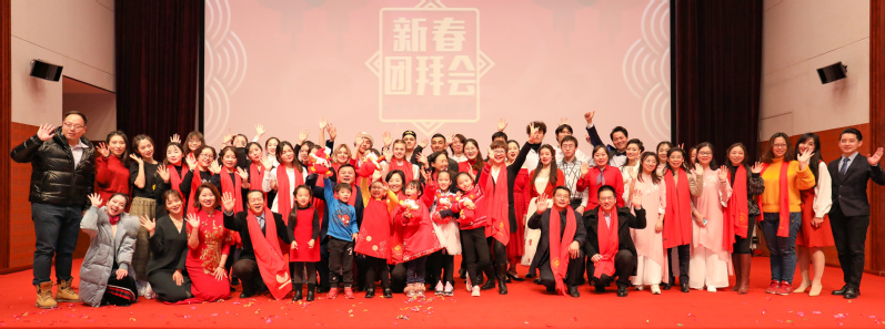 2019年学校工作回顾视频拉开了团拜会表演序幕。学校工会、学工队伍、教职工代表、后勤工作人员、学生合唱团以及可爱的“政二代”小朋友们分别带来了歌曲、舞蹈、诗朗诵、古筝演奏等节目。团拜会现场气氛热烈、掌声不断。