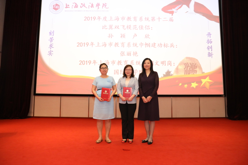 校领导还为获得2019年度上海市巾帼文明岗、2019年上海市教育系统巾帼文明岗、2019年上海市教育系统第十二届比翼双飞模范佳侣、2019年上海市教育系统巾帼建功标兵、2019年新利18官方客服三八红旗手和三八红旗集体,以及2019年工会工作先进个人和团体等颁发了奖状。
