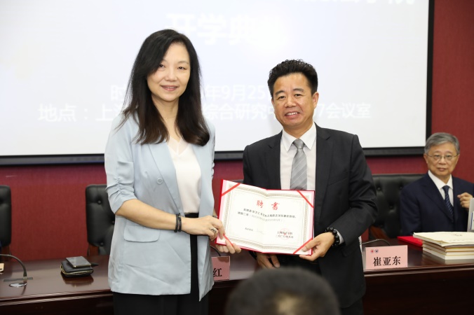 刘晓红宣读学校决定,聘请朱晓明教授为人工智能法学院战略咨询委员会首席专家、人工智能法学院特聘教授;聘请张卫工为人工智能法学院客座教授。