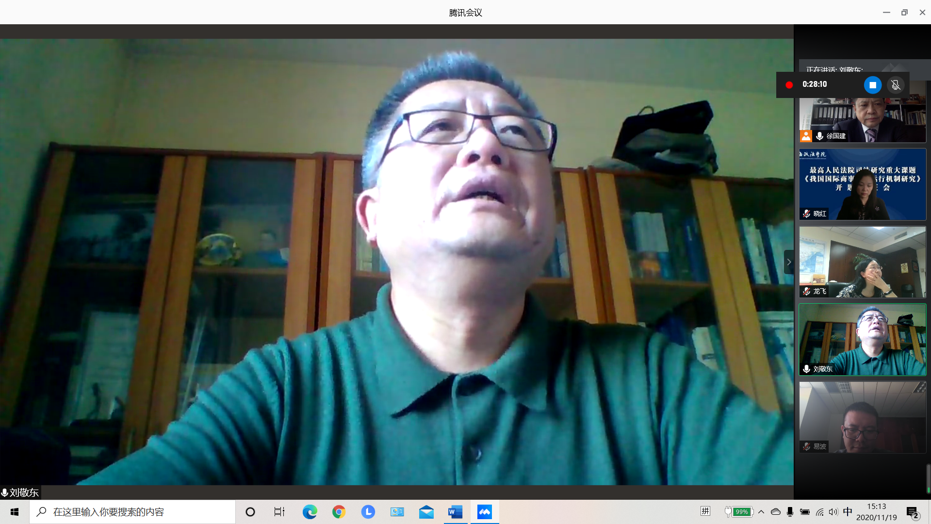 学校要闻 11月19日下午,我校刘晓红教授作为负责人获批的最高人民法院司法研究重大课题《我国国际商事法庭运行机制研究》开题论证会通过线上会议形式成功举行,这也是我校获批的第一个最高人民法院的重大课题。