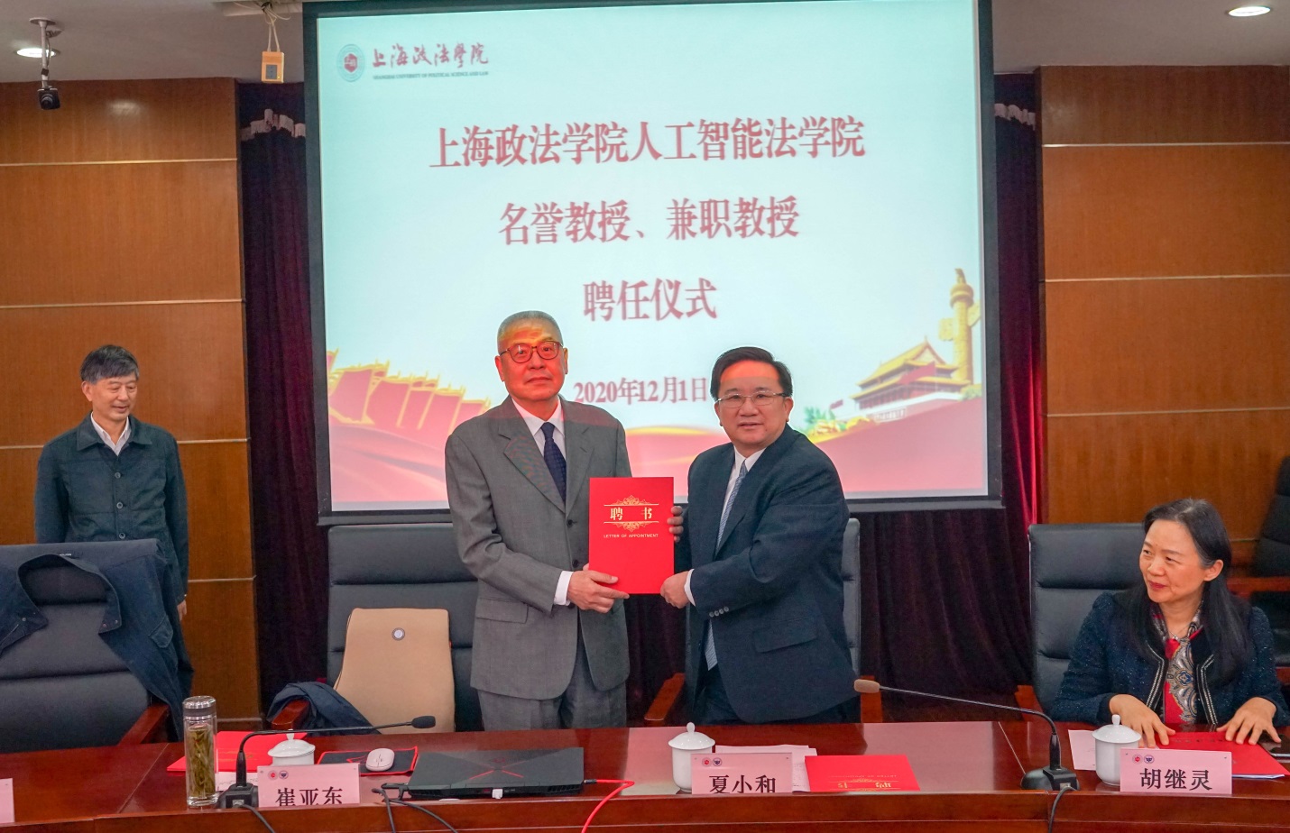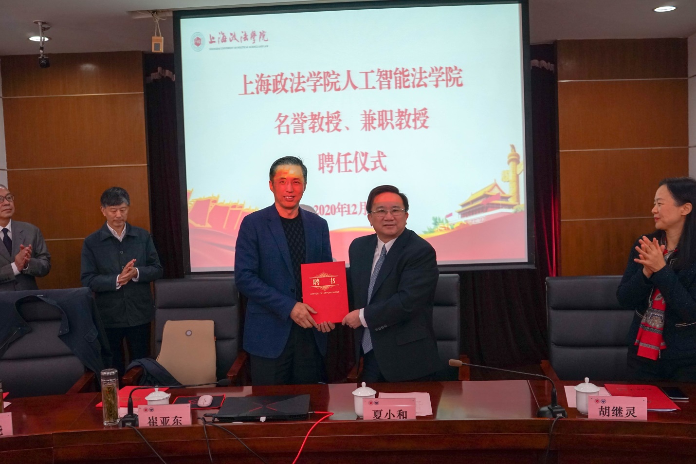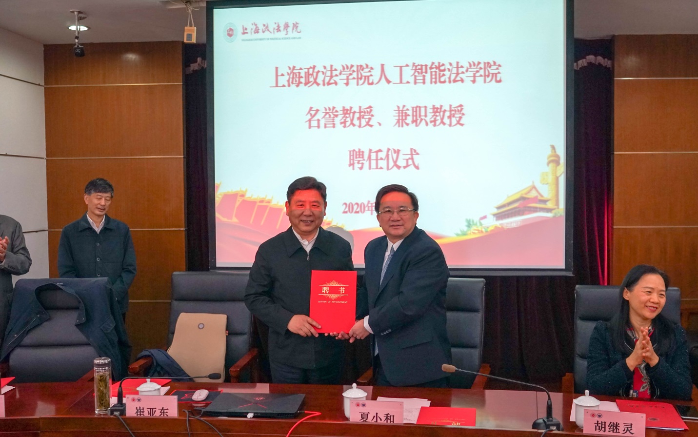 学校要闻 12月1日下午,人工智能法学院名誉教授(首席专家)、兼职教授(专家委员会主任、副主任)聘任仪式在求实楼513会议室举行。校党委书记夏小和、副校长胡继灵以及受聘专家出席仪式。