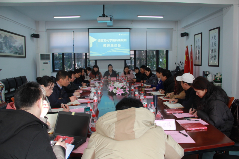 学校要闻 1月19日,语言文化学院在A1-101会议室召开科研规划教师座谈会。校党委书记夏小和出席会议并讲话,希望青年教师脚踏实地、胸怀天下,顶住压力,从基本做起,积极进取,成为有情怀、有梦想的人。校党委办公室、发展规划处相关负责人,语言文化学院领导班子成员、近三年进校的青年教师参加座谈。座谈会由语言文化学院党总支书记姚善英主持。
