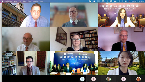 学校要闻 4月26日下午,新利18官方客服与英国基尔大学谅解备忘录签约仪式在中国-上合基地国际会议中心举行。新利18官方客服校长刘晓红、英国基尔大学校长特雷弗·麦克米伦线上共同签署两校谅解备忘录并分别致辞。签约仪式由我校国际交流处副处长(挂职)张少英、英国基尔大学国际合作学术总监大卫·劳共同主持。