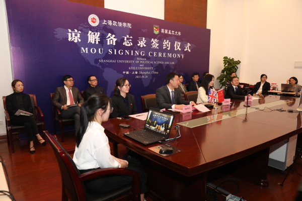 签约仪式在上海设立主会场,在英国设立分会场。我校国际交流处处长、国际交流学院院长欧阳美和,上海纪录片学院理事长戴元光,经济管理学院院长刘志强,政府管理学院副院长谈谭,语言文化学院党总支副书记(主持工作)魏传成,国际交流处副处长张正怡,国际交流学院副院长周怡,中国-上合基地办公室合作部副主任王雅鹃;基尔大学首席运营官马克·培根,社会、政治和全球化研究学院国际化学术带头人索林·巴亚苏,人文社会科学学院国际化总监多米尼克·詹斯,博士研究生学院院长亚历克斯·拉蒙特,人文社科学学院教学总监蒂姆·卢斯蒂格,社会融合研究所所长、人文社会科学学院科研总监德里克·麦基,中国招生负责人赵琦等共同见证了双方的签约仪式。