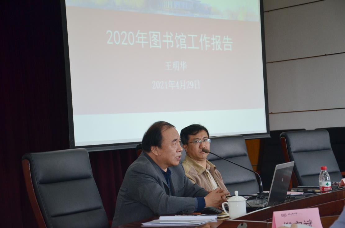图书馆馆长王明华围绕建设目标和思路、常规业务开展、安全保障成效、创新性服务四个方面作2020年图书馆工作报告。报告确立以问题为导向的工作思路,明确图书馆定位、工作目标和主要工作内容。在做好常规业务的基础上,致力于创新并取得成效,革新数字资源建设、凸显“第二课堂”、注重疫情防控,并提出2021年图书馆工作要点。