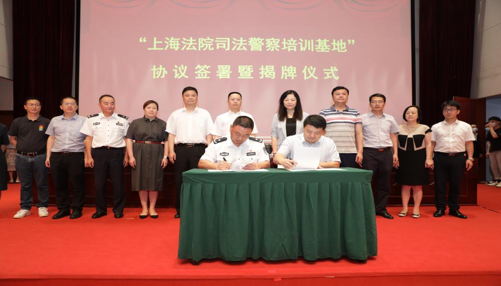 协议签订后,刘晓红与谭滨共同为“上海法院司法警察培训基地”揭牌。