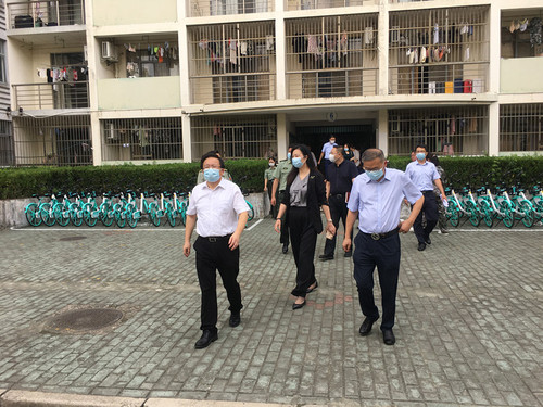在学生社区,平辉向学工部门同志和值班宿管员询问学生住宿情况,叮嘱要定时清点住宿人数,做到底数清、情况明,确保学生社区安全。