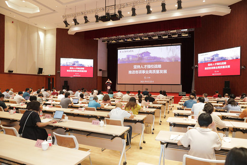 校党委书记夏小和在讲话中以“坚持人才强校战略,推进各项事业高质量发展”为主题,重点围绕人才队伍建设问题,分别从形势与政策、现状与不足、思路与举措三个方面结合国家政策与学校实际情况进行逐一解读分析。就做好下一阶段工作,夏小和提出三点要求:一是坚持师德为先,引领教师锤炼高尚品格;二是深化两级管理,激发二级学院办学活力;三是强化引育并举,提升人才队伍整体水平。