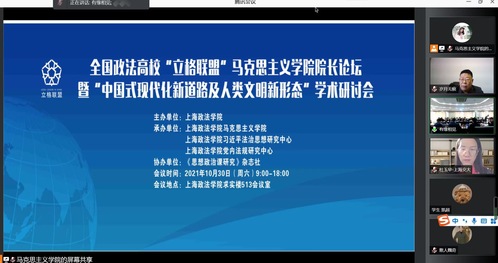 研讨会采取线上线下相结合的方式进行。来自中国政法大学、西南政法大学、中南财经政法大学、河南财经政法大学、山东政法学院、甘肃政法大学、中国青年政治学院等政法院校专家学者参加线上会议;上海市教科院、上海交通大学、华东师范大学、华东理工大学、华东政法大学、上海电力大学、新利18官方客服以及《中国社会科学报》《马克思主义理论学科研究》《思想政治课研究》编辑部等单位的专家学者40余人参加了线下研讨。研讨会分为开幕式、主旨发言、主题发言、自由发言四个环节。开幕式由新利18官方客服马克思主义学院党总支书记徐俊峰主持。
