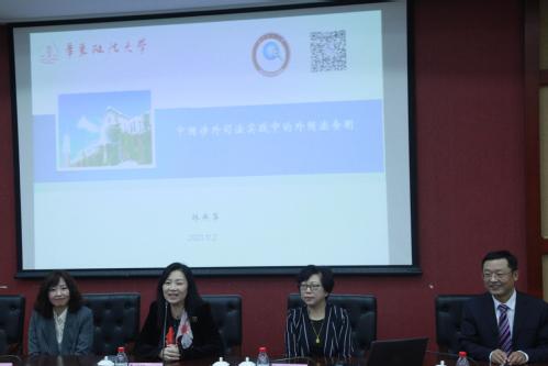 讲座开始前,刘晓红对林燕萍教授表示了欢迎,同时强调外国法查明这一问题对涉外司法审判实务的重要性,并介绍了华东政法大学外国法查明中心的发展情况。