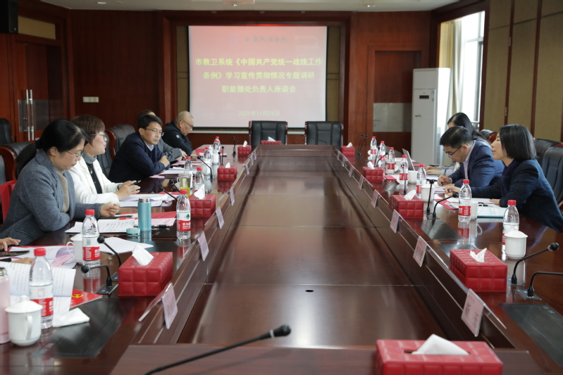 11月24日上午,市教卫工作党委系统学习贯彻《中国共产党统一战线条例》第六调研组组长、上海第二工业大学党委副书记吴沛东一行莅临我校进行专题调研。校党委书记夏小和出席调研汇报会,学校统战工作领导小组成员单位负责人参加会议,汇报会由组长吴沛东主持。