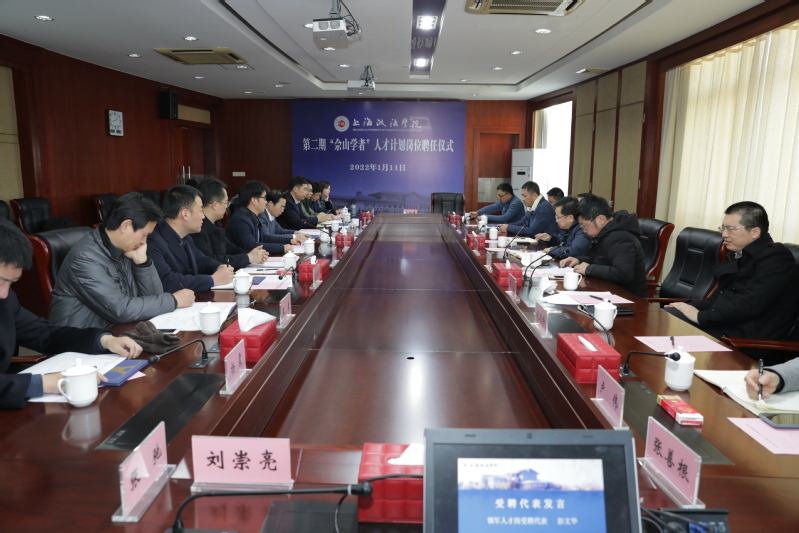 学校要闻 1月11日下午,我校在求实楼413会议室举行第二期高原学科“佘山学者”聘任仪式。校党委书记夏小和、副校长郑少华出席,学校办公室、发展规划处(学科办)、人事处、教务处、科研处等部门负责人,第二期“佘山学者”领军人才岗、拔尖人才岗受聘人员参加。聘任仪式由郑少华主持。